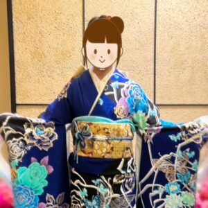 かど屋のスタッフが実際のお客様の振袖選びの様子、
