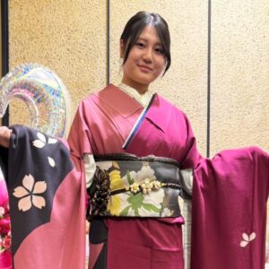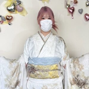 かど屋のスタッフが実際のお客様の振袖選びの様子、
