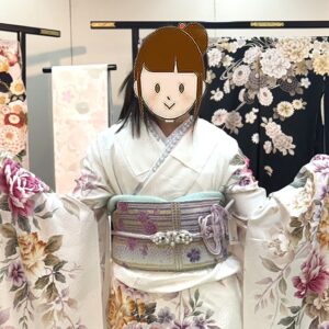 かど屋のスタッフが実際のお客様の振袖選びの様子、