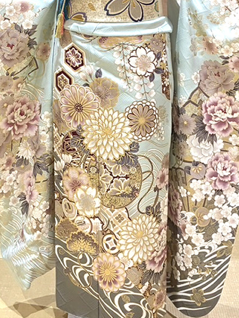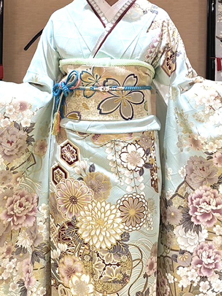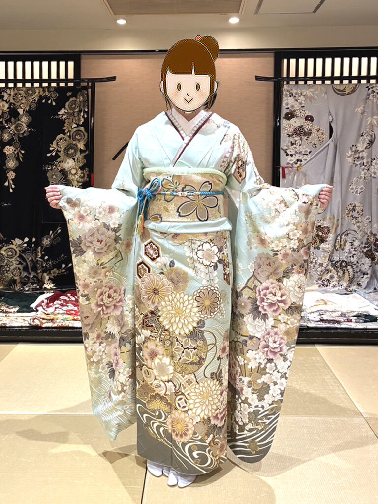 かど屋のスタッフが実際のお客様の振袖選びの様子、