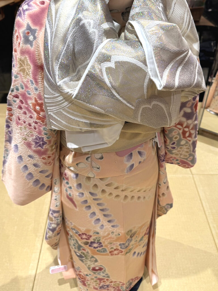 かど屋のスタッフが実際のお客様の振袖選びの様子、