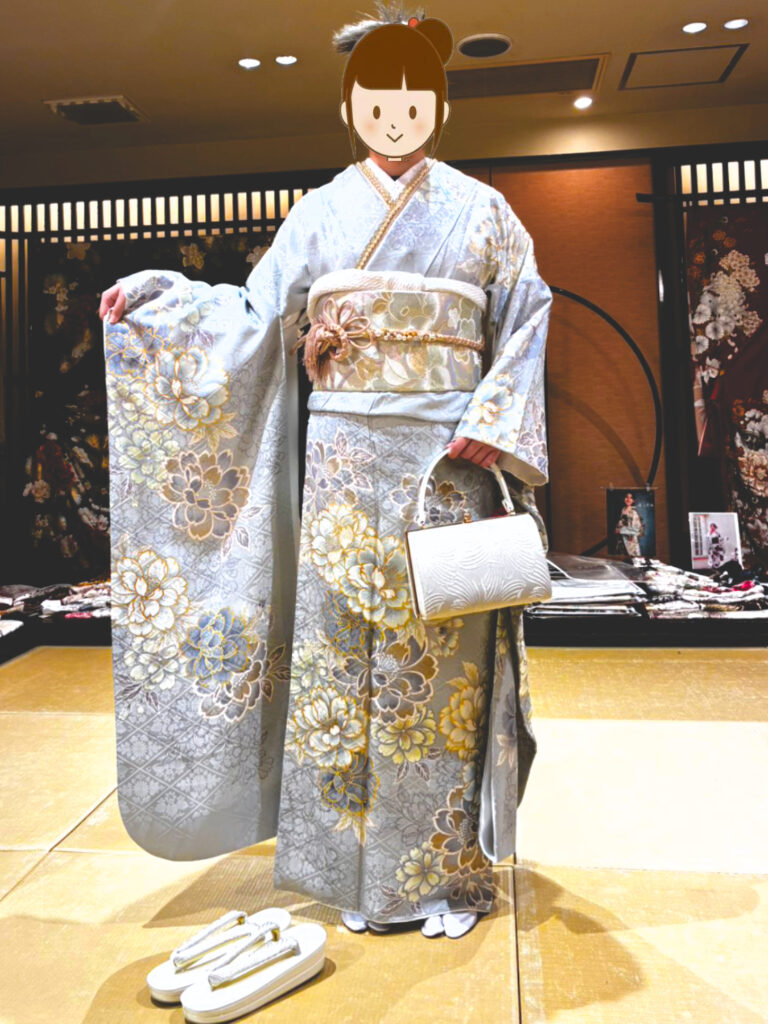 かど屋のスタッフが実際のお客様の振袖選びの様子、