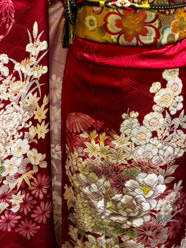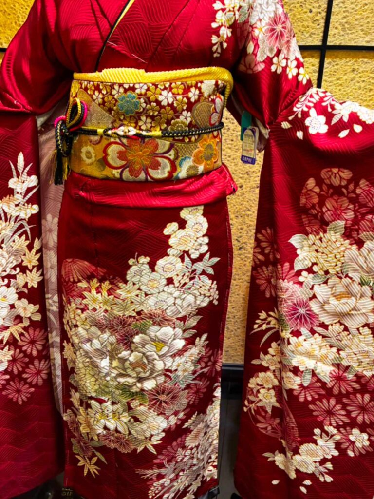 エンジ色のお振袖を探していました。