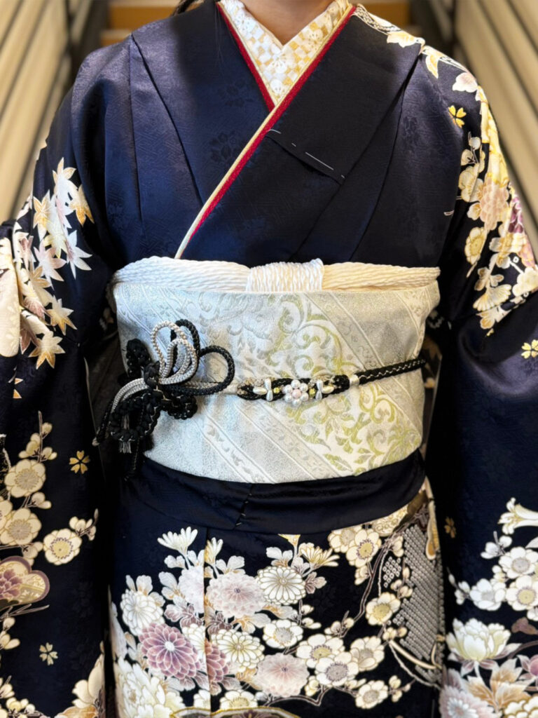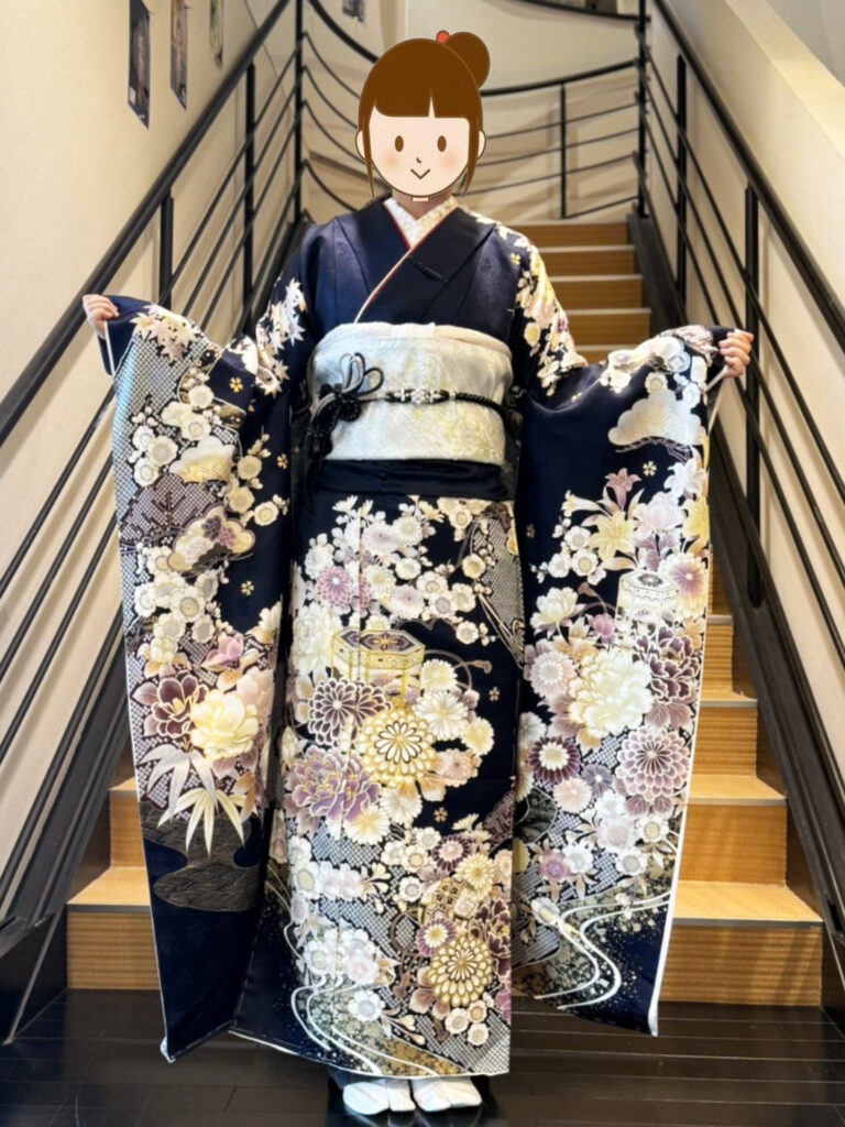 とおっしゃって、紺色のお振袖にお決めになりました。