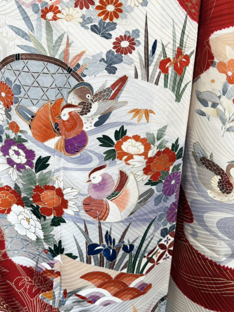 四季折々の草花や優雅に舞うおしどりが描かれた、