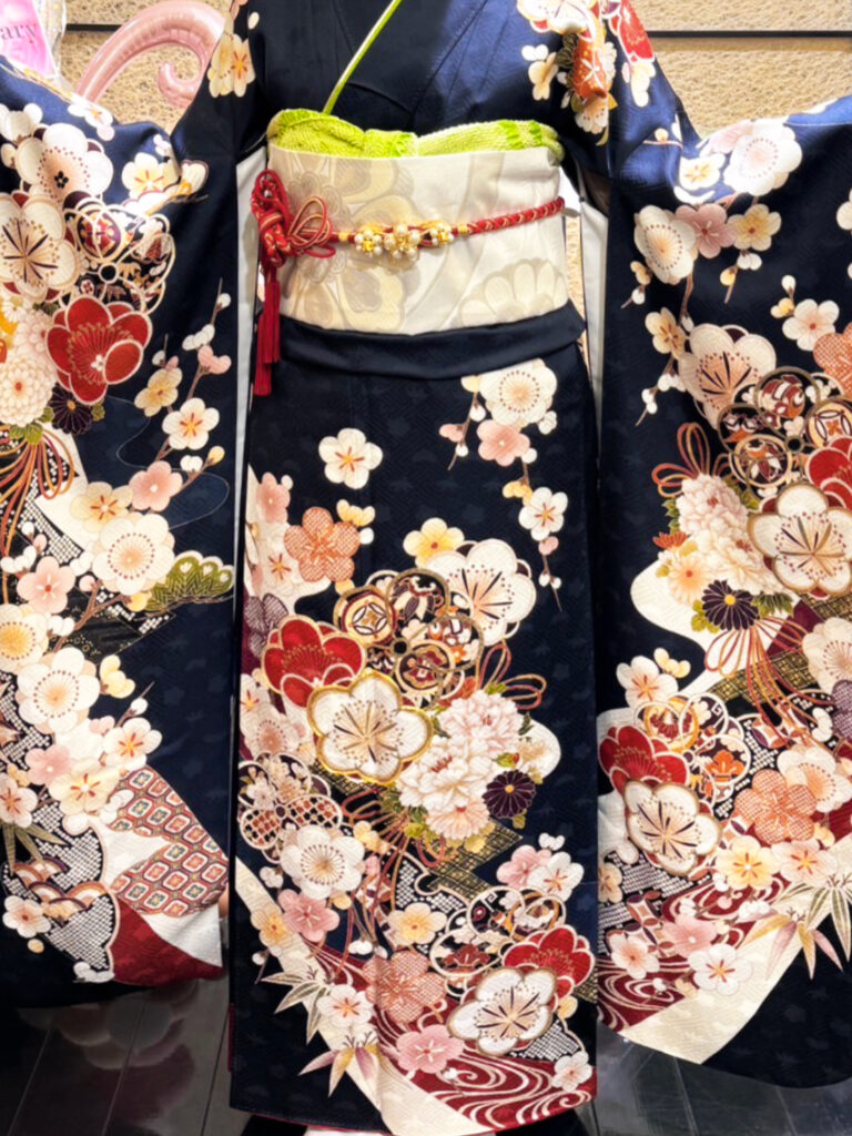 お選びいただきました紺色のお振袖は、