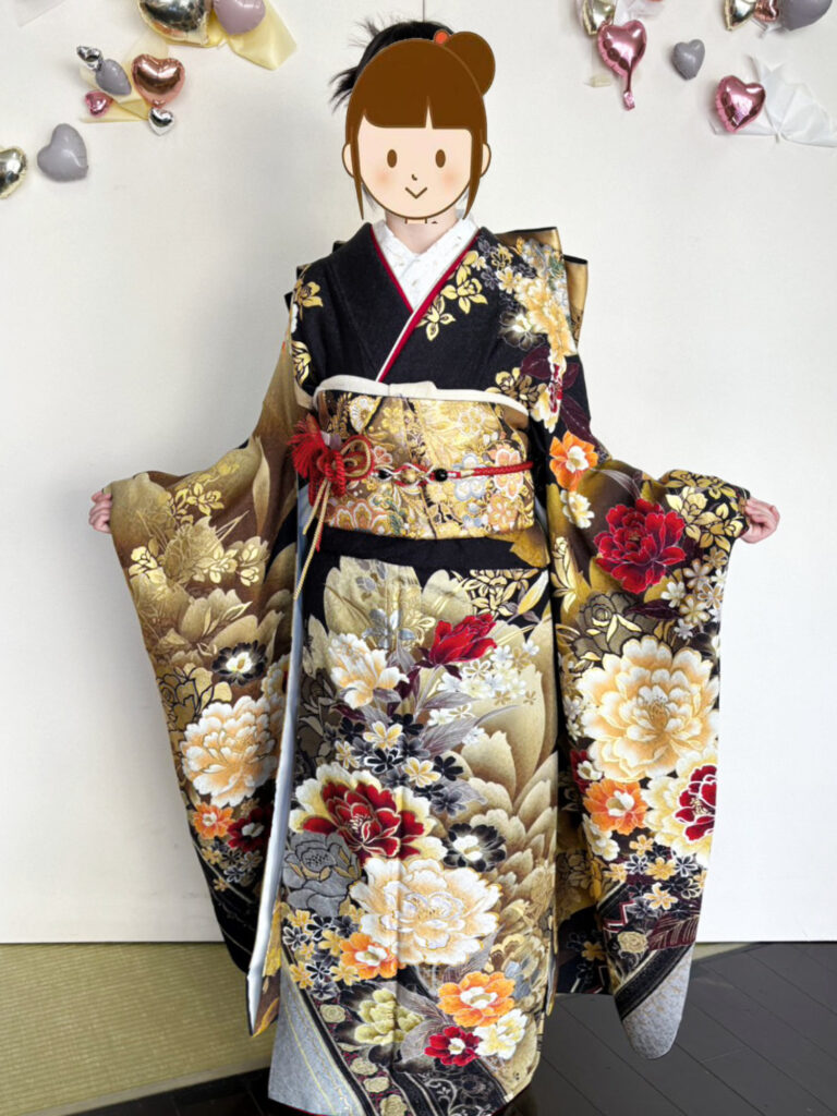 最初にお嬢様の目にとまったのが黒の振袖でした。
