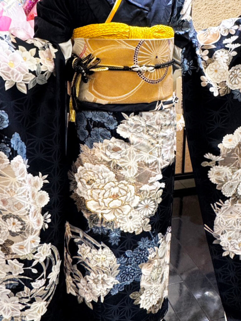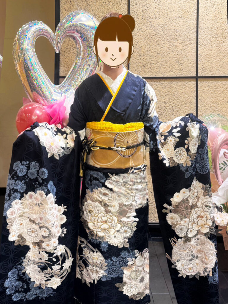その中で、お選びいただいた紺色の華やかなお振袖は、
