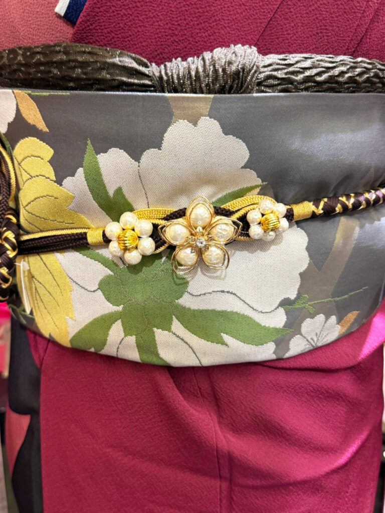 帯締めの飾りもアクセントとなり、